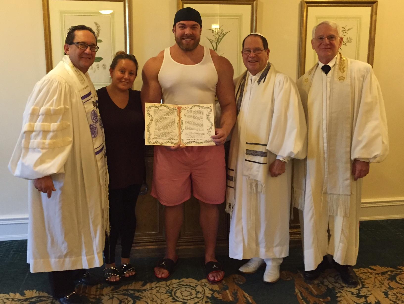 You will be asked to pick a Hebrew name. Some male choose the Hebrew name Avraham as their new Hebrew first name and some female choose Sarah or Ruth. Since the use of Hebrew names includes mention of the parents’ Hebrew names, and you had no Jewish parents, it is common to add “ben Avraham Avinu,” or son of Abraham, our Father. Therefore if a male chooses the Hebrew name Avraham, that male’s full Hebrew name would be Avraham ben Avraham Avinu. For women, the addition is “bat Sarah Imenu,” daughter of Sarah, our Mother. The naming ceremony includes a blessing.